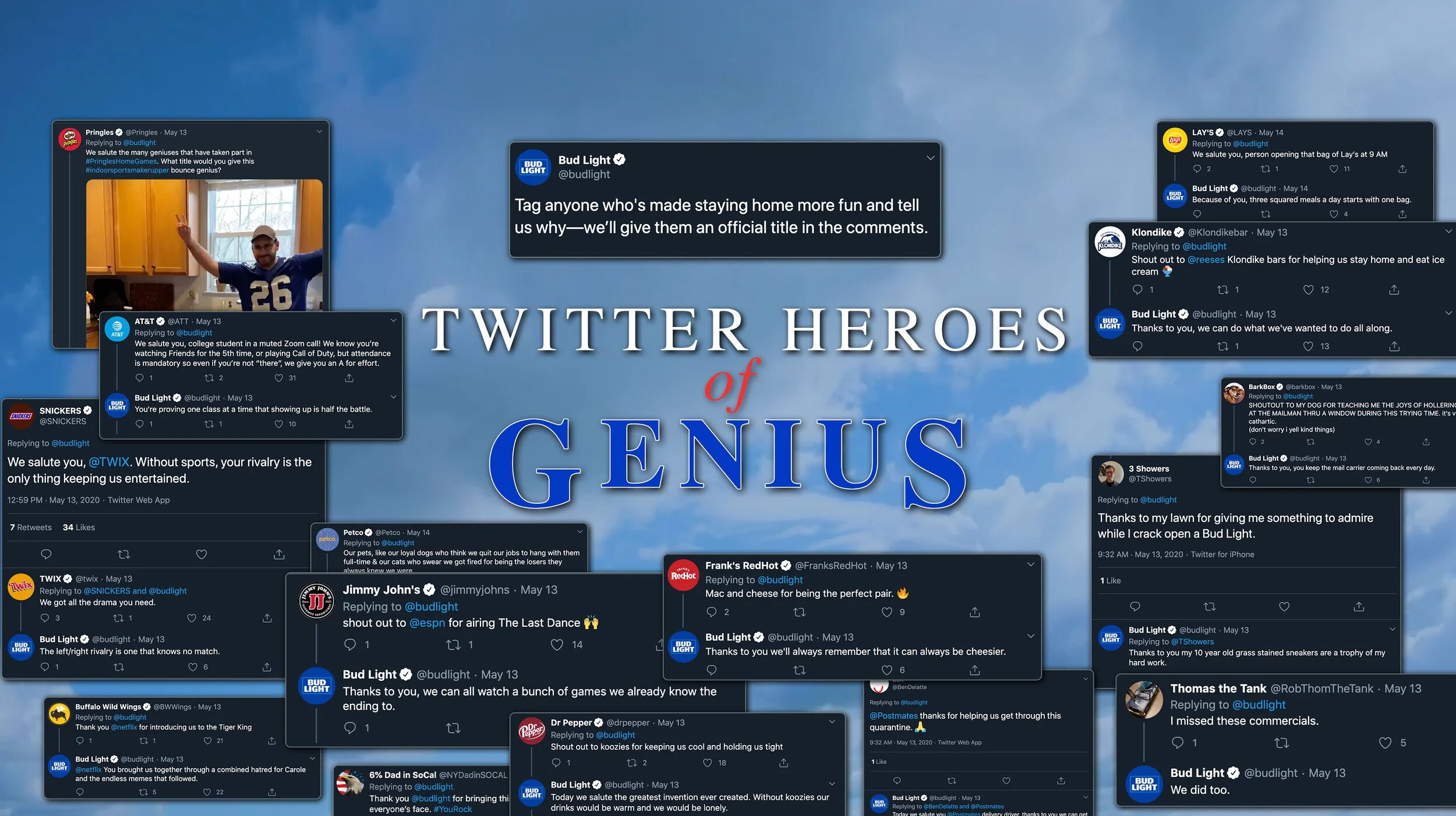Viral videos of newly minted sports, balcony ballads, and sourdough starters had flooded the feeds. The exact kind of stuff Bud Light used to celebrate with their ‘Real Men of Genius’ campaign.